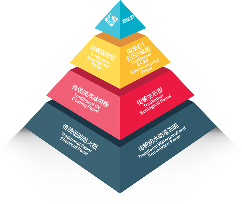 - “家倍安”使用高阻隔金屬鋁箔和高滲、超耐磨納米材料,經過高溫高壓獨特的工藝方法處理,飾面木質纖維結構更加縝密,隔音、降噪,導熱系數低,防火等級高,達到國家防火材料防火標準A2級。